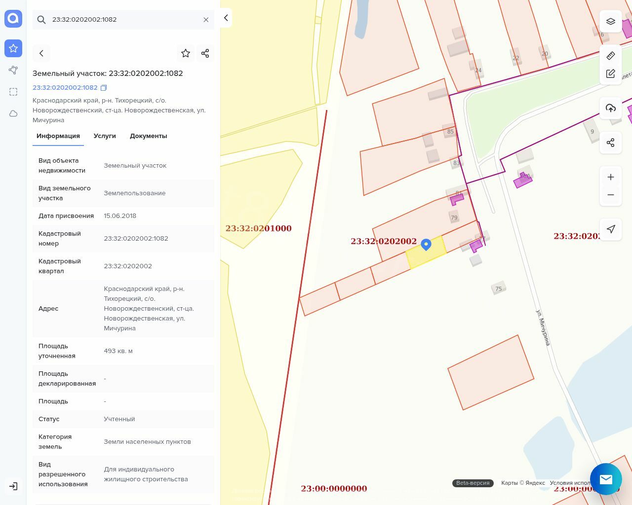 Земельный участок, площадью 493 кв.м., категория земель: земли населенных пунктов, вид разрешенного использования: для ИЖС, КН: 23:32:0202002:1082