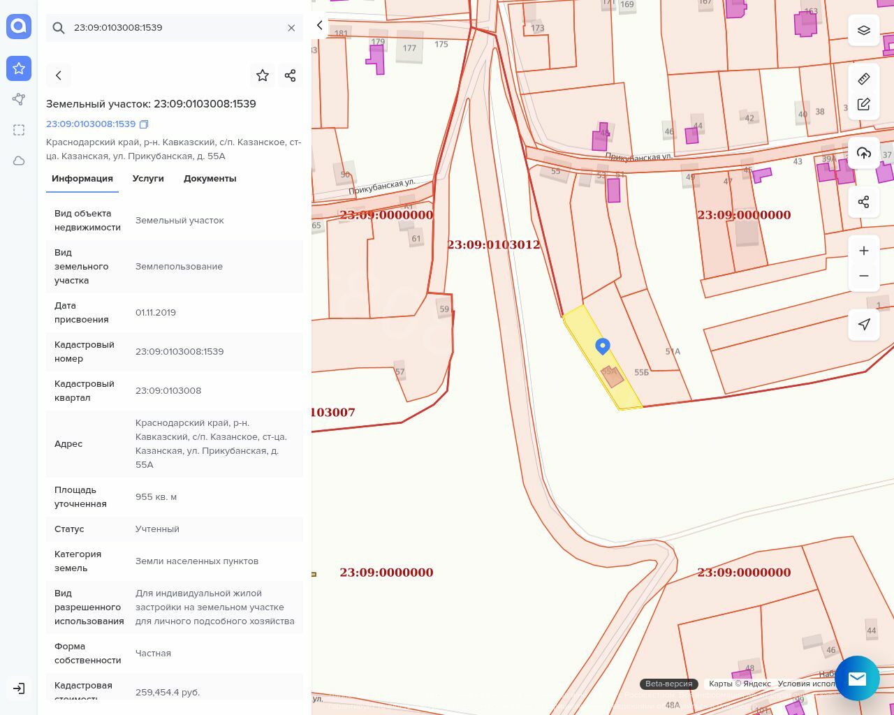 Жилой дом, общая площадь 86,2 кв.м адрес объекта: 352147, кадастровый номер 23:09:0103008:1528 Земельный участок, размер земельного участка 955 кв.м, категория земель: земли населенных пунктов. Разрешенное использование для объектов жилой застройки, кадастровый номер 23:09:0103008:1539